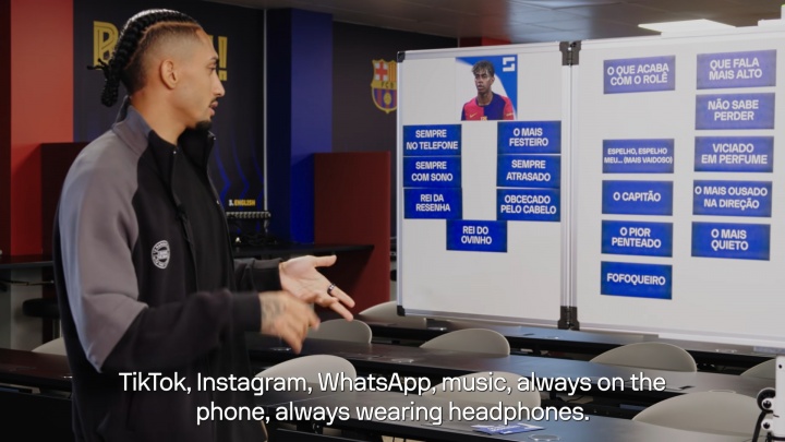 02月06日讯 巴萨球员拉菲尼亚接受Sofascore采访,在一个互动环节中他将一些短语放在了相应的球员上,他也谈到了自己对于亚马尔的一些看法和相关的趣事。